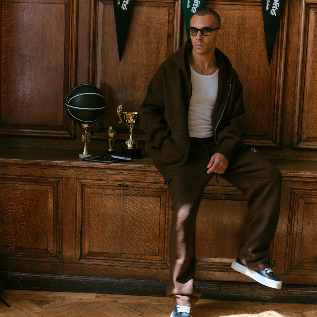 FLUFFY KNIT FULL ZIP SET BROWN