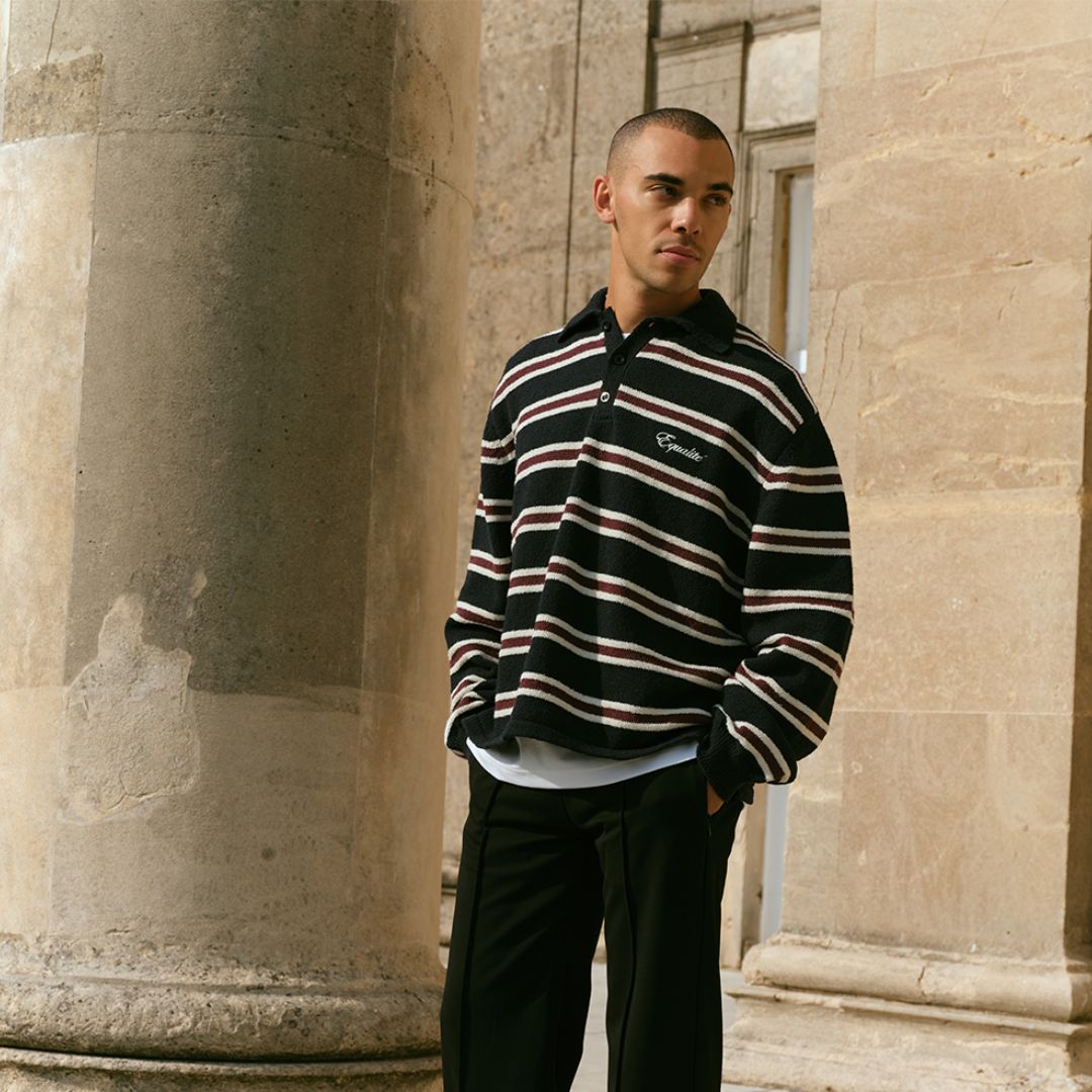 VARSITY POLO SWEATER NAVY & OFF-WHITE