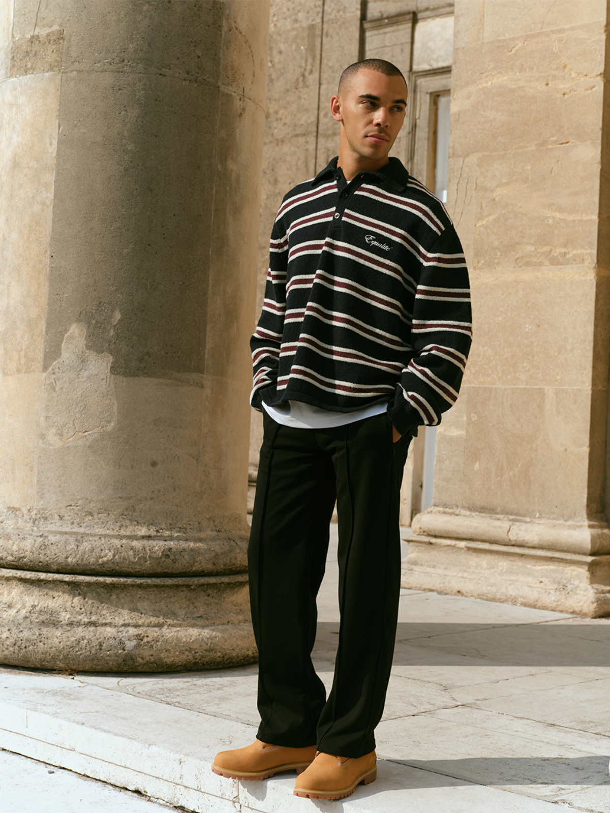 KNIT JERSEY LONGSLEEVE POLO | BLACKKNIT JERSEY LONGSLEEVE POLO | BLACK