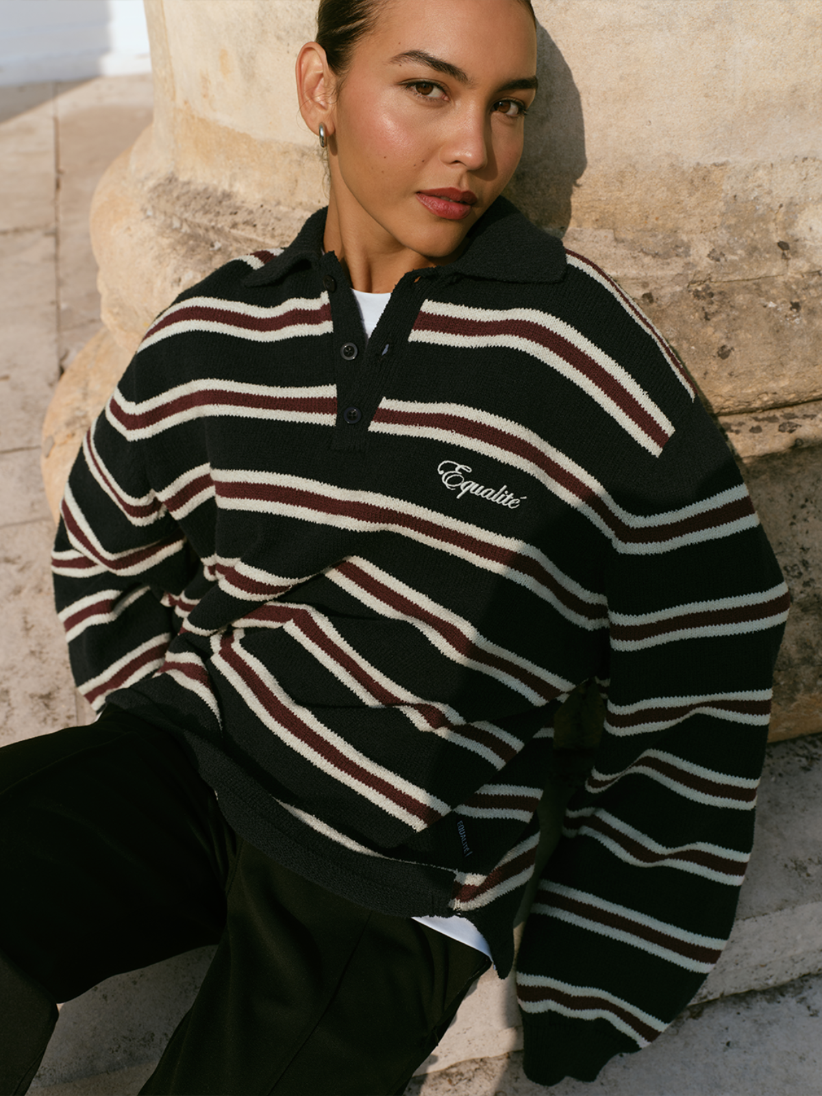 FINN KNIT POLO | Striped Navy/Aubergine/WhiteFINN KNIT POLO | Striped Navy/Aubergine/White