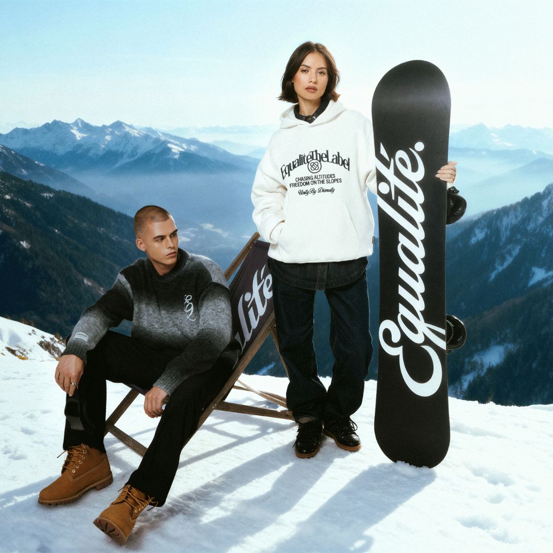 Meet the Equalité EQ Knit Sweater in Grey. This sweater has an oversized fit and features a round ribbed collar and ribbed cuffs and hem. It also features a white embroidered EQ logo on the left chest and a label above the cuff on the right sleeve.