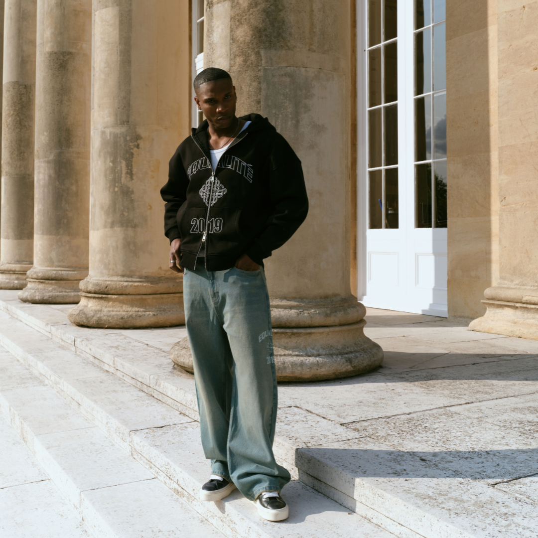 Meet the Equalité Fem Baggy Jeans in Light Blue. These jeans have a baggy fit and feature a zip-and-button closure, two side pockets, and two back pockets. The back pockets feature an embroidered EQ logo, and the side legs feature an Equalité artwork. The jeans are finished with our Equalité studs in matte silver.
