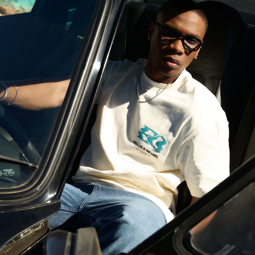 Discover the Equalité Heat oversized tee in off-white. The tee has an oversized fit and features a round collar. On the left chest and on the back is a petrol puff print artwork.