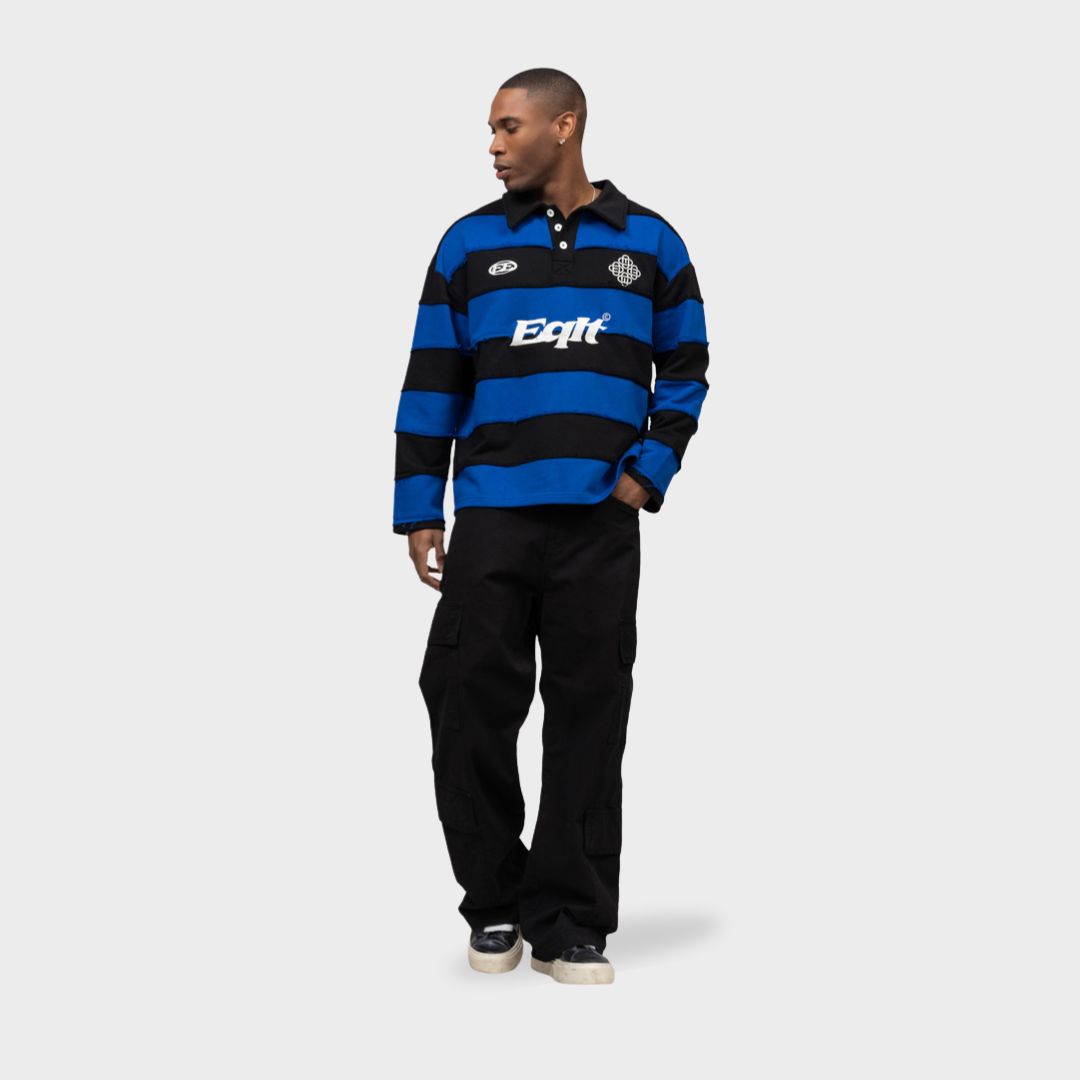Discover the Equalité Kian Cargo Pants in Black. These pants have an oversized fit with two zippered side pockets, two back pockets, and four cargo pockets on the legs, as well as a mid-rise waist with a drawstring. They feature a white embroidered signature Equalité logo on the front of the left leg and an embroidered signature Societé symbol on the left leg.