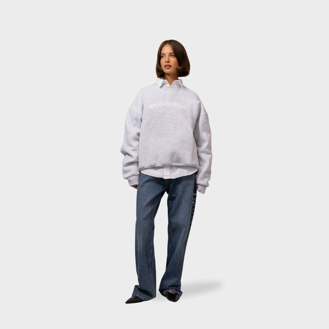 Meet the Equalité Signature Straight Fit Jeans in Blue. These jeans have a straight fit and feature a zip-and-button closure, two side pockets, and two back pockets. The back pocket features an embroidered Societé symbol and Equalité artwork on the side of the leg. The jeans are finished with our Equalité studs in matte silver.