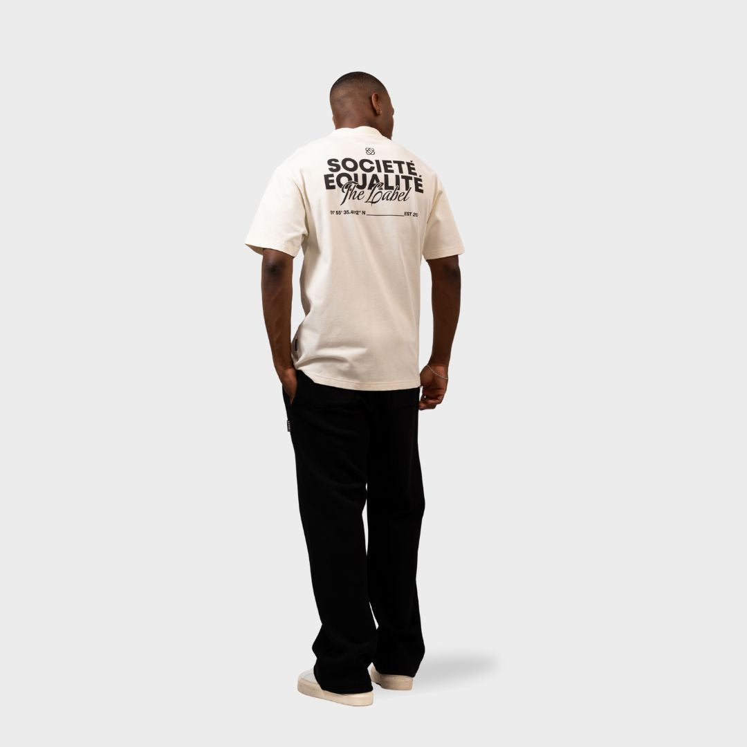 Get to know the Equalité Societé Oversized Tee in Off-white. The tee has an oversized fit with a crew neck and features a black screen print of the signature Societé logo on the left chest and back, inspired by our exclusive Members Club. This Societé Oversized Tee is part of a set and can be paired with matching joggers and a full-zip hoodie.