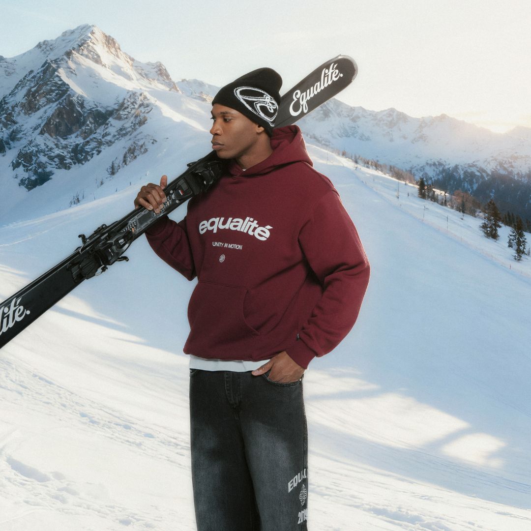 Lerne den Equalité Celeste Oversized Hoodie in Aubergine kennen. Der Hoodie hat eine Oversized-Passform und ist mit einer Kapuze, einer Kängurutasche sowie gerippten Bündchen und einem gerippten Saum ausgestattet. Ein weißes, aufgedrucktes Celeste-Logo prangt mittig auf der Brust. Der Hoodie ist Teil eines Sets und kann mit der passenden Jogginghose kombiniert werden.