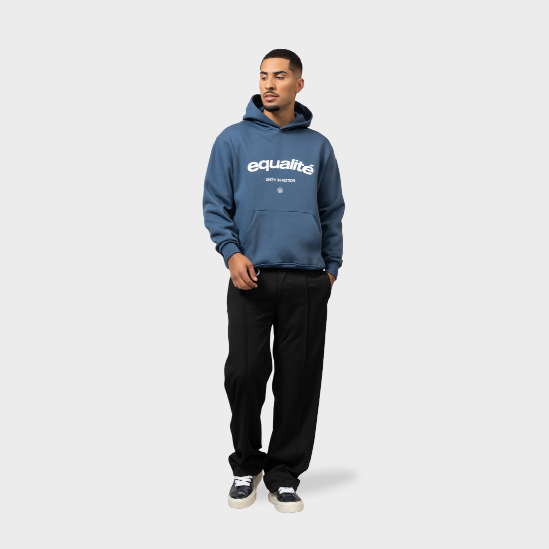 Lerne den Equalité Celeste Oversized Hoodie in Marineblau kennen. Dieser Hoodie hat eine Oversized-Passform und verfügt über eine Kapuze, eine Kängurutasche sowie gerippte Bündchen und einen gerippten Saum. Ein weißes, aufgedrucktes Celeste-Logo prangt mittig auf der Brust.