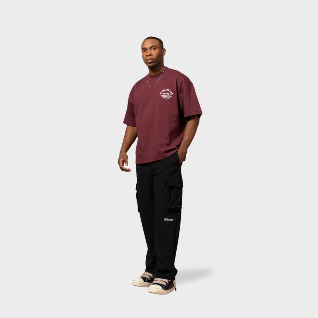 Entdecken Sie die Equalité Charly Cargohose in Schwarz. Diese Hose hat einen Oversize-Schnitt mit zwei seitlichen Reißverschlusstaschen, zwei Gesäßtaschen und zwei Cargotaschen an den Beinen sowie einen mittelhohen Bund mit Kordelzug. Sie verfügt über ein weiß gesticktes Equalité-Logo auf der Vorderseite des linken Beins und ein gesticktes Societé-Symbol auf dem linken Bein.