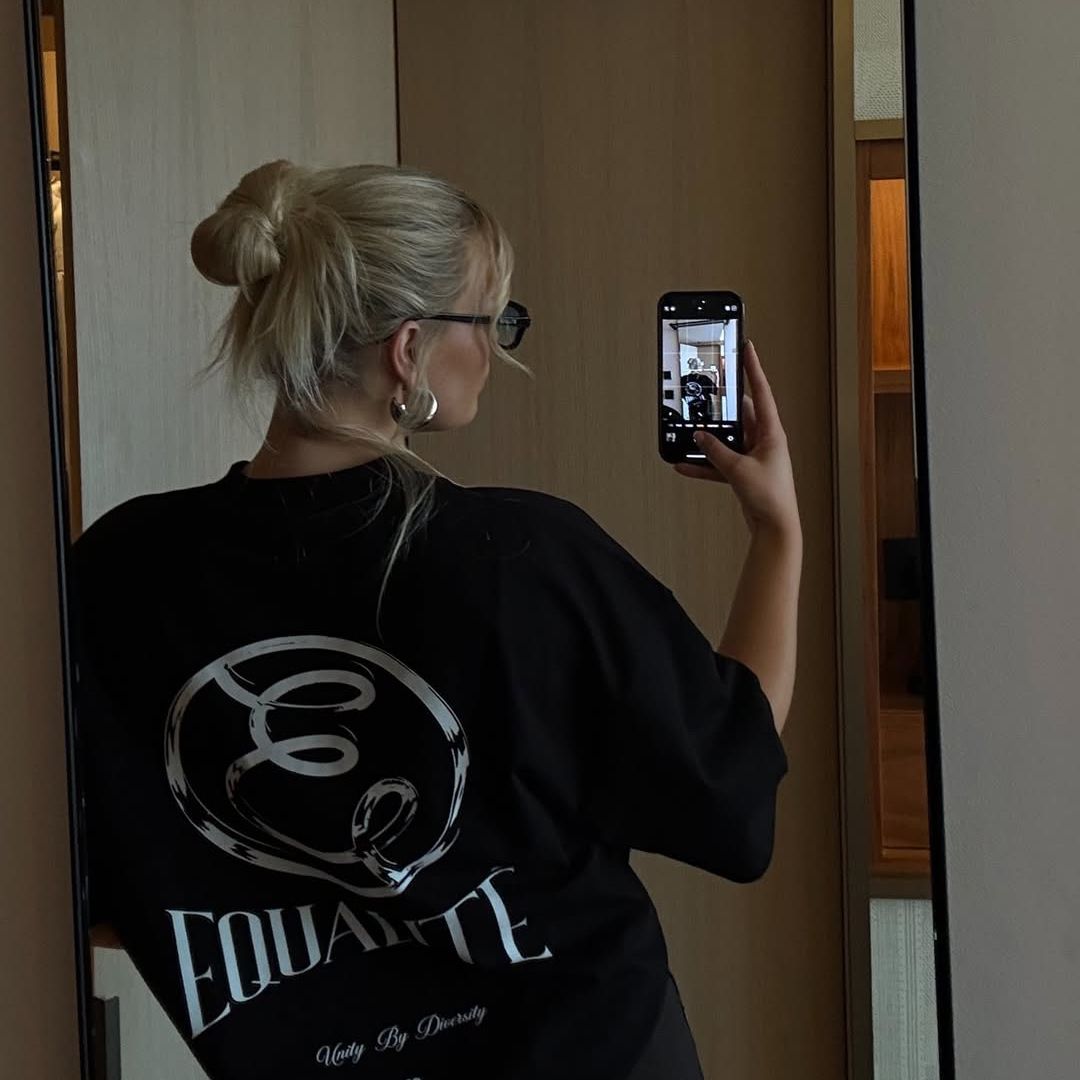 Entdecken Sie das Equalité Chloé Boxy Tee in Schwarz. Das T-Shirt hat eine kastige Passform mit Rundkragen und ist mit einem weißen Siebdruck des Chloé-Logos auf der Brust und dem Rücken versehen.
