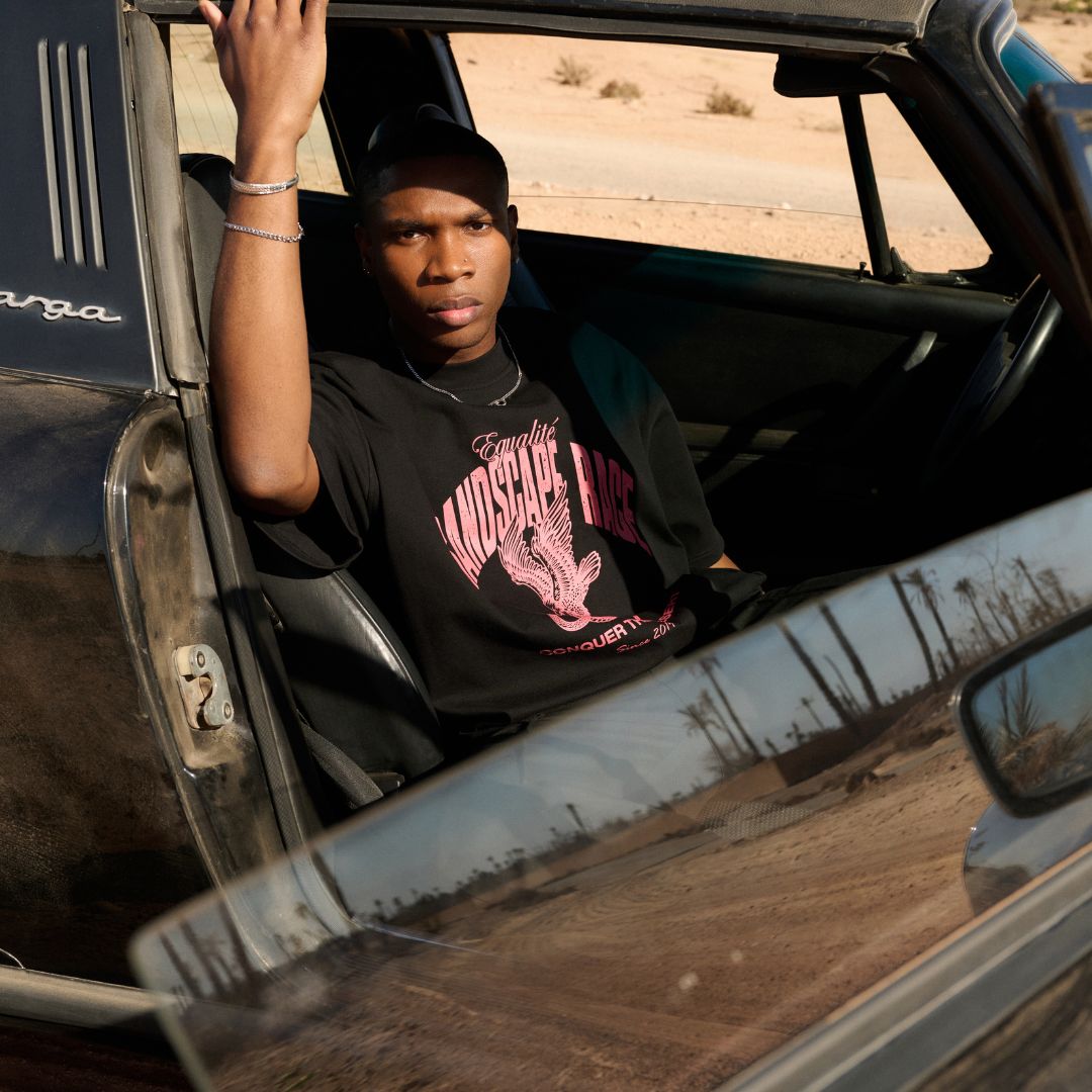 Lernen Sie das Equalité Eagle Boxy-T-Shirt in Schwarz kennen. Das T-Shirt hat eine kastige Passform und einen runden Kragen. Auf der Brust befindet sich ein rosa Siebdruck-Kunstwerk.
