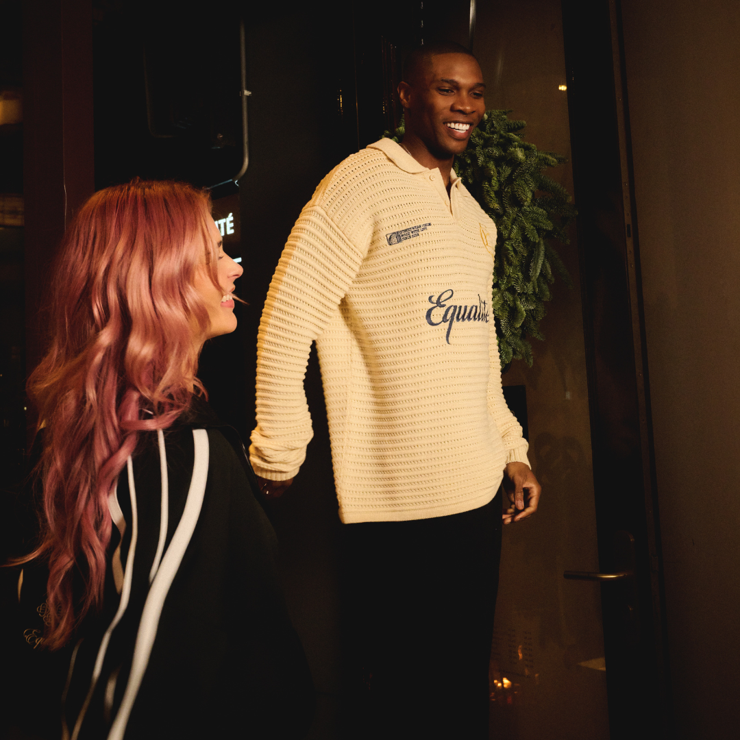 Lernen Sie das Equalité Heritage Rib Knit Polo in Off-White kennen. Dieses Poloshirt im klassischen Rippstrick-Stil hat eine Oversized-Passform und einen Polokragen. Brust und Rücken sind mit einer blauen Stickerei des EQLT-Logos verziert.