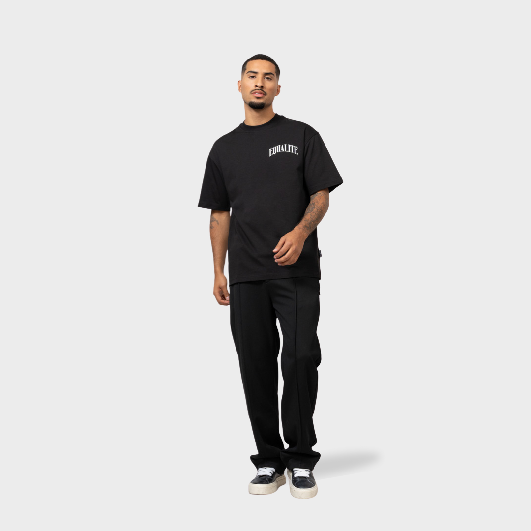 Das Equalité Oliver Oversized-T-Shirt in Schwarz ist da! Es hat eine Oversized-Passform, einen Rundhalsausschnitt und einen weißen Puffprint des charakteristischen Oliver-Logos auf der linken Brust und dem Rücken.