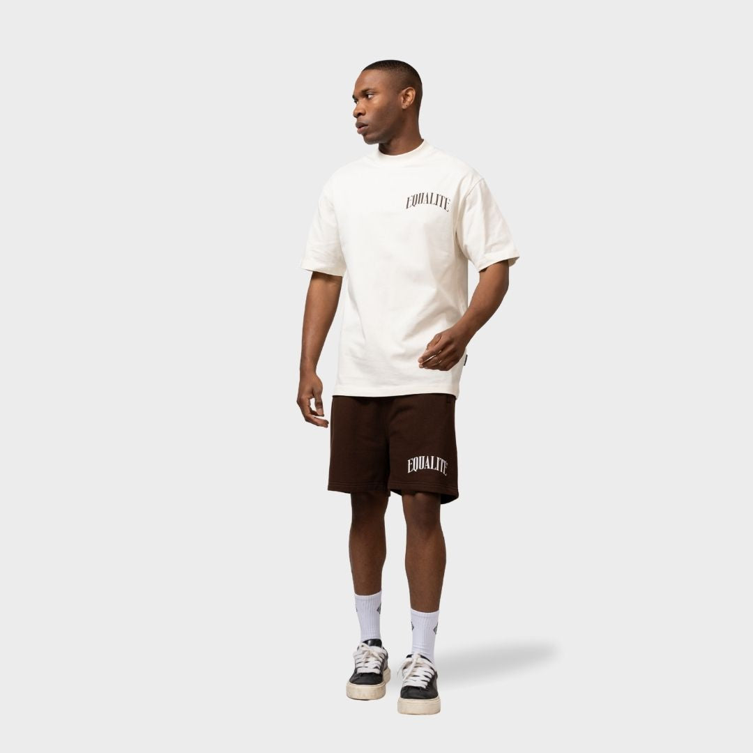Lernen Sie das übergroße T-Shirt von Equalité Oliver in Off-White und Schwarz kennen. Das T-Shirt hat eine übergroße Passform mit rundem Kragen und ist mit einem schwarzen Siebdruck des charakteristischen Oliver-Logos auf der linken Brust und auf dem Rücken versehen.